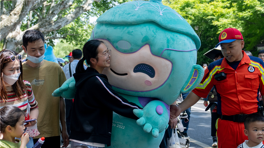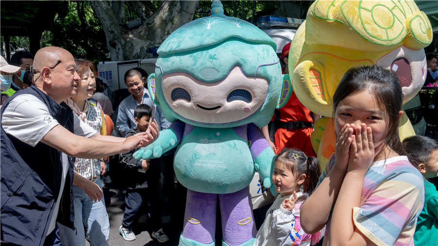 “妈妈,快帮我拍个合照。”来自安徽合肥的孙姓小游客,一看到吉祥物就央求妈妈快点帮他拍张合影。“之前对杭州亚运会了解得不是很多,但这么可爱的吉祥物在西湖边居然遇到了,太幸运啦。”小孙说:“今年九月我一定要来杭州看亚运比赛,再和这三个可爱的吉祥物合个影。”