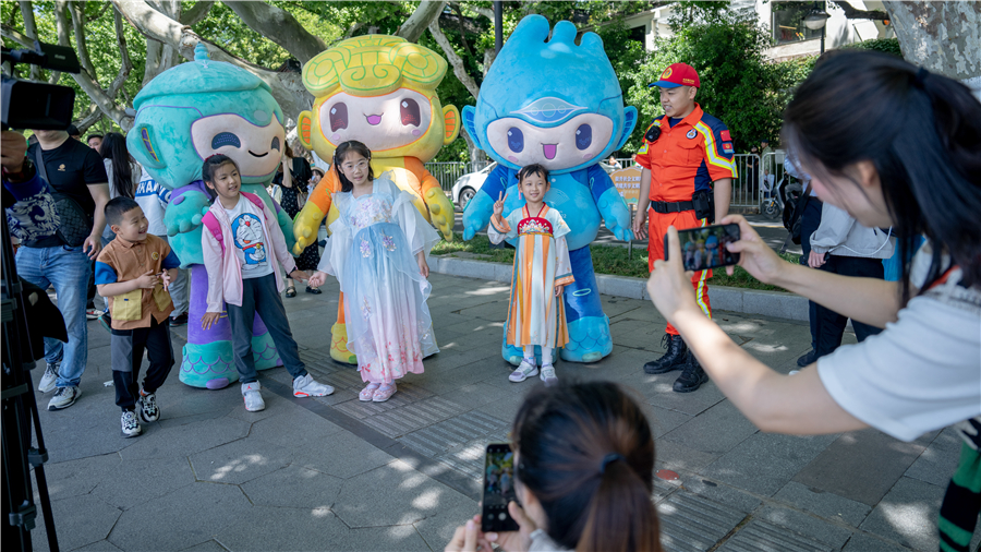 上午10点多,“三小只”一出现在北山路瞬间就成为了西湖边的焦点。吉祥物们憨态可掬的样子,吸引着大批小朋友和家长们前来围观。与“三小只”合影成了在场每个小朋友的第一“愿望”。