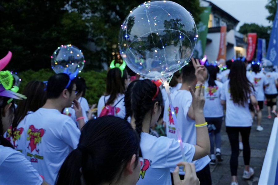 荧光夜跑被称为“最闪亮的赛跑”,不仅可以强身健体,还极具趣味性。本次活动以情侣跑作为特色,跑友们利用荧光装备随性装扮,化身点点繁星,汇成一条璀璨“星河”,点亮西溪爱情之夜。针对年轻人的喜好,赛道沿途设置了多个爱情主题互动打卡点,同时配备氛围手举牌等艺术道具,令浪漫气氛持续升温。而单身跑友也可由官方配对的形式来场美丽的“邂逅”。