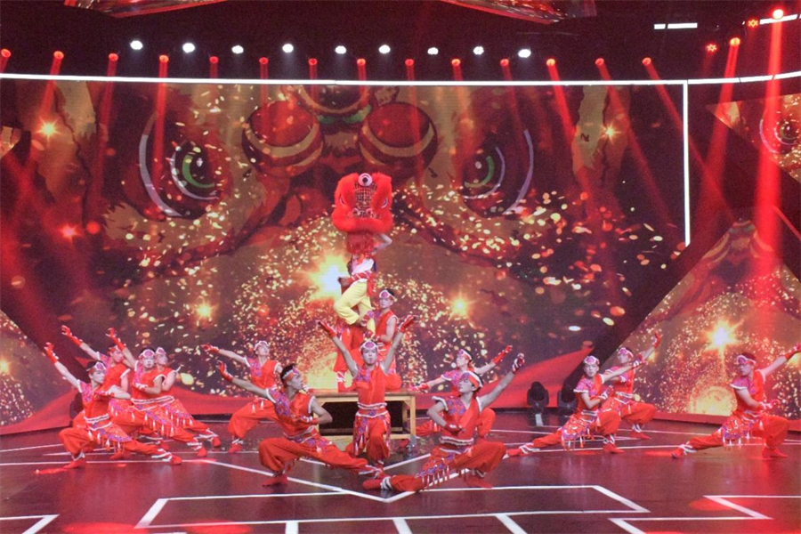 在北京星光演播厅大型文艺汇演的录制现场,广州市番禺区石楼中学的小使者们带来了舞蹈《少年狮说》。