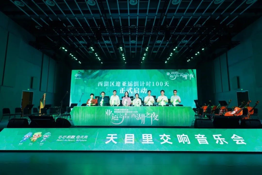 悠扬的歌声,婉转的乐曲,恢弘激昂的管弦乐……夜幕降临,杭州市西湖区天目里点点灯光亮起,6月15日晚,“亚运之声 西湖之夜”天目里交响音乐会暨西湖区迎亚运倒计时100天活动在杭州天目里上演,台下的观众和音符一起舞动,喜迎亚运盛会。