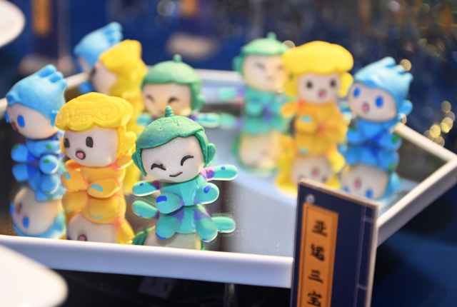 《西子青绿》是什么“绿”?现场,被昵称为“亚运三小只”的杭州亚运会吉祥物也让人忍不住来瞅一瞅。杭帮菜博物馆行政总厨张永说,杭帮菜应时食令是一大特色,这次展台以“西子青绿”为主题,通过杭州亚运会吉祥物——琮琮(良渚古城遗址)、宸宸(京杭大运河)、莲莲(西湖)的相关元素,选用杭州应季食材,“如眼下初夏,青莲煮玉、青柠虾徽、仲夏乌米饭都是当季时令,用杭帮菜特色来展现杭州的三大世界遗产以及亚运活力拼搏精神,这个创作过程十分享受,未来,我们将为市民游客提供更丰富的‘杭州菜单’。”