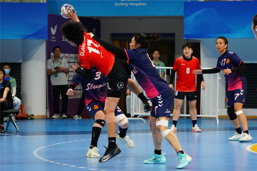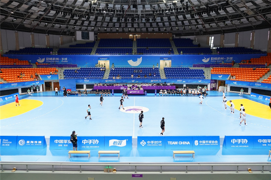 6月30日,“韵味杭州”2023年全国女子手球冠军杯赛迎来了第三个比赛日,来自全国各地的10支队伍,在浙江工商大学和浙江师范大学(萧山校区)不断上演着精彩的对决。这也是两所高校的亚运场馆建成后,首次举办全国性手球比赛,意味着杭州亚运会筹办工作已经进入了冲刺阶段。