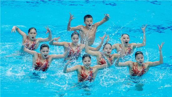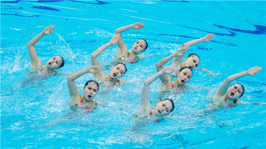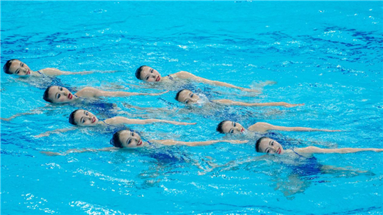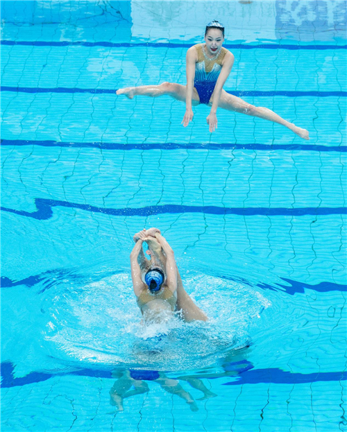 有音乐有“芭蕾”!有着“水上芭蕾”之称的花样游泳比赛来到杭州了。今天(5月25日)下午,“为期三天的韵味杭州”2023年全国花样游泳冠军赛在杭州奥体中心游泳馆举行,来自全国8支代表队的100余名运动员演绎“水中芭蕾”。