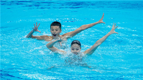 值得注意的是,在今晚比赛中,16岁小将杨顺诚和队友们一起拿下了混双技术自选和集体技术自选的冠军。前几天在埃及举行的世界泳联花样游泳世界杯第三站中,杨顺诚则摘得了男子单人技术自选冠军和男子单人自由自选冠军。