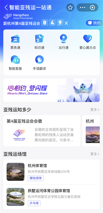 智能亚残运一站通首次上线涵盖了票务通、出行通、爱心展示点、知识通、智能客服和手语翻译六个主要功能。