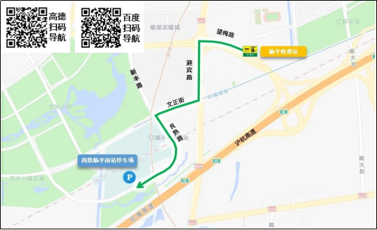 高铁临平南站南广场停车场、地铁临平南站P+R社会停车场:经临平辖区从杭州北方向入杭,可以将车辆停放至高铁临平南站南广场停车场、地铁临平南站P+R社会停车场或周边就近停车场,换乘地铁9号线临平高铁南站进入市区。