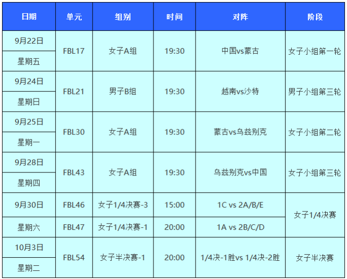 足球比赛赛程