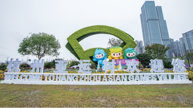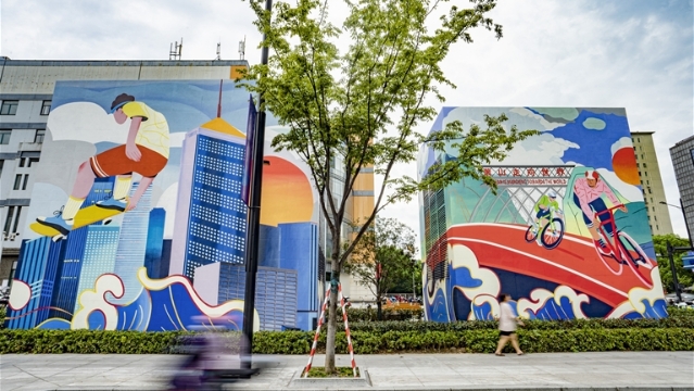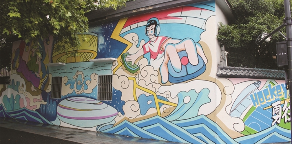 杭州地铁5号线E出口现亚运巨型彩色墙绘