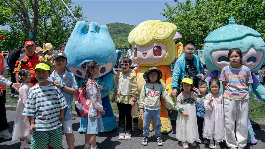 “五一”长假,亚运吉祥物也来逛西湖了,还给一群“特别的人”带来了特殊的礼物