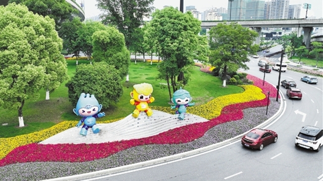 杭州这场运动会浓浓“文化味” 场馆内巨幅《西湖清趣图》亮了!