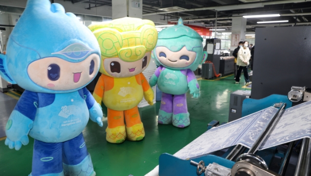 亚运吉祥物体验一条亚运丝巾的智能生产过程